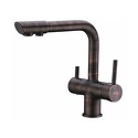 Назначение: кухонный • Конструкция: однорычажный • Монтаж: горизонтальный • Клапан: керамический • Материал: латунь, покрытие - бронза • Подводка: гибкая • Монтажные отверстия: 1 отверстие • Форма излива: традиционная • Душевая лейка в комплекте: нет • Аэратор: есть