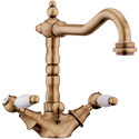 Назначение: для умывальника • Конструкция: с раздельными клапанами • Монтаж: горизонтальный • Клапан: керамический • Материал: латунь, покрытие - двухцветный • Монтажные отверстия: 1 отверстие • Форма излива: традиционная • Душевая лейка в комплекте: нет • Донный клапан в комплекте: есть
