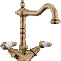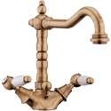 Назначение: для умывальника • Конструкция: с раздельными клапанами • Монтаж: горизонтальный • Клапан: керамический • Материал: латунь, покрытие - золото • Монтажные отверстия: 1 отверстие • Форма излива: традиционная • Душевая лейка в комплекте: нет • Донный клапан в комплекте: есть