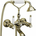 Назначение: ванна+душ • Конструкция: с раздельными клапанами • Монтаж: вертикальный • Клапан: керамический • Материал: латунь, покрытие - бронза • Подводка: жесткая • Монтажные отверстия: 2 отверстия • Форма излива: традиционная • Душевая лейка в комплекте: есть • Держатель для душевой лейки: на смесителе • Эксцентрики в комплекте: есть • Донный клапан в комплекте: есть