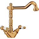 Назначение: кухонный • Конструкция: с раздельными клапанами • Монтаж: горизонтальный • Материал: латунь, покрытие - бронза • Монтажные отверстия: 1 отверстие • Форма излива: традиционная • Душевая лейка в комплекте: нет • Донный клапан в комплекте: есть