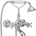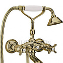 Назначение: ванна+душ • Конструкция: с раздельными клапанами • Монтаж: вертикальный • Клапан: керамический • Материал: латунь, покрытие - золото • Подводка: жесткая • Монтажные отверстия: 2 отверстия • Форма излива: традиционная • Душевая лейка в комплекте: есть • Держатель для душевой лейки: на смесителе • Эксцентрики в комплекте: есть • Донный клапан в комплекте: есть