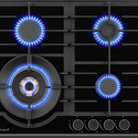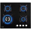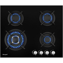 Поверхность: варочная панель • Тип поверхности: газовая • Рабочая поверхность: закаленное стекло • Число конфорок: 4 • Установка: независимая • Газовые конфорки: всего - 4 (1 конфорка "Тройная корона") • Газ-контроль конфорок: есть • Тип управления: механическое • Переключатели: поворотные • Электроподжиг: есть, автоматический • Размеры: 600x510x40 мм • Размер ниши для встраивания: 560x490 мм