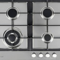 Поверхность: варочная панель • Тип поверхности: газовая • Рабочая поверхность: нерж.сталь • Число конфорок: 4 • Установка: независимая • Газовые конфорки: всего - 4 (1 конфорка "Тройная корона") • Газ-контроль конфорок: есть • Тип управления: механическое • Переключатели: поворотные • Электроподжиг: есть, автоматический • Размеры: 584x510x44 мм • Размер ниши для встраивания: 560x480 мм • Цвет: панель - нерж.сталь