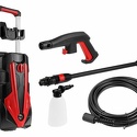 Комплектация- Шланг высокого давления 6 м;- Рукоятка;- Пистолет;- Трубка-удлинитель;- Регулируемое сопло;- Фильтр тонкой очистки;- Емкость для моющего средства;- Адаптор для присоединения шланга;- Прочистная иголка;- Паспорт.