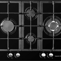 Поверхность: варочная панель • Тип поверхности: газовая • Рабочая поверхность: закаленное стекло • Число конфорок: 4 • Установка: независимая • Газовые конфорки: всего - 4 (1 конфорка "Тройная корона") • Газ-контроль конфорок: есть • Тип управления: механическое • Переключатели: поворотные • Электроподжиг: есть, автоматический • Размеры: 604x510x50 мм • Размер ниши для встраивания: 552x470 мм