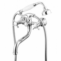 Назначение: ванна+душ • Конструкция: двухрычажный • Монтаж: вертикальный • Клапан: керамический • Материал: латунь, покрытие - бронза • Подводка: жесткая • Монтажные отверстия: 2 отверстия • Форма излива: традиционная • Душевая лейка в комплекте: есть • Держатель для душевой лейки: на смесителе • Аэратор: есть • Эксцентрики в комплекте: есть • Донный клапан в комплекте: есть