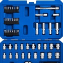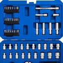 КомплектацияГоловки торцовые 1/4″ - ( 4, 4.5, 5, 5.5, 6, 7, 8, 9, 10, 11, 12, 13,14 мм) - 13 шт.Головки торцовые удлиненные ( 6, 7, 8, 10 мм) - 4 шт.Трещотка 1/4″ - 1 шт.Шарнир карданный 1/4″ - 1 шт.Удлинители 1/4″ - ( 50, 100 vv) - 2 шт.Вороток-отвертка 1/4″ - 1 шт.Биты 1/4″ 25 мм - ( T8, T10, T15, T20, T25, T27, T30, T40, SL4, SL5.5, SL6.5 H3, H4, H5, H6, H7, H8, H10, PZ1, PZ2, PZ3, PH1, PH2, PH3) - 24 шт.Адаптер для бит - ( 1/4″HEX x 1/4″SQ) - 1 шт.Ключи имбусовые - ( 1.5, 2, 2.5, 3 мм) - 4 шт.