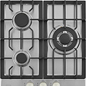 Тип: полностью газовая • Поверхность: нержавеющая сталь • Конфорки: газ 3 шт, турбоконфорка • Габариты для встройки: Ш 430 мм, Г 480 мм
